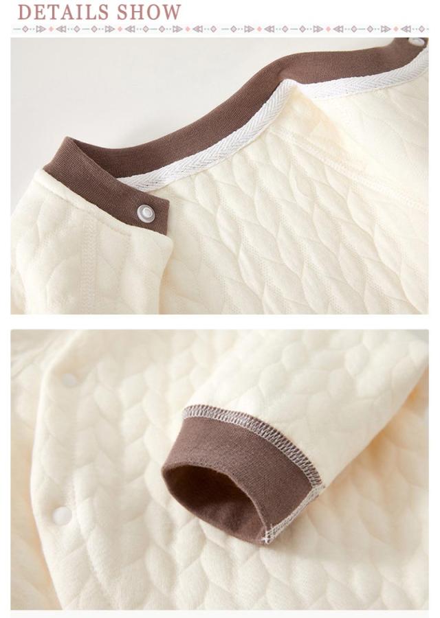 | 前開き厚手ロンパース!アニマル柄のかわいいロンパース。 厚手な3重コットン素材で保温性が高く、これからの寒い季節にぴったり。 キルトの中綿が暖かい空気を含んで、暖かさを維持。 ふわふわ柔らかい肌触りと、暖かみある素材感。 吸水性に優れていますので、汗をかいても快適・保温もばっちり。 お着替えがしやすい前開きデザイン。 スナップボタンなのでおむつ替えも楽々できます。 | |