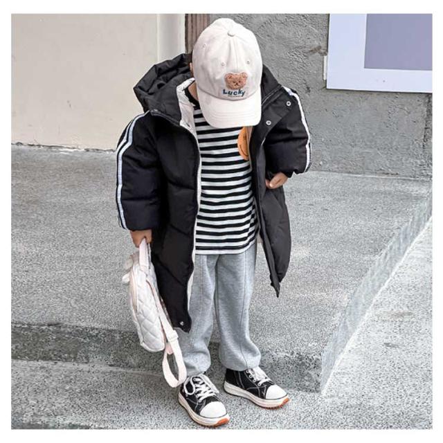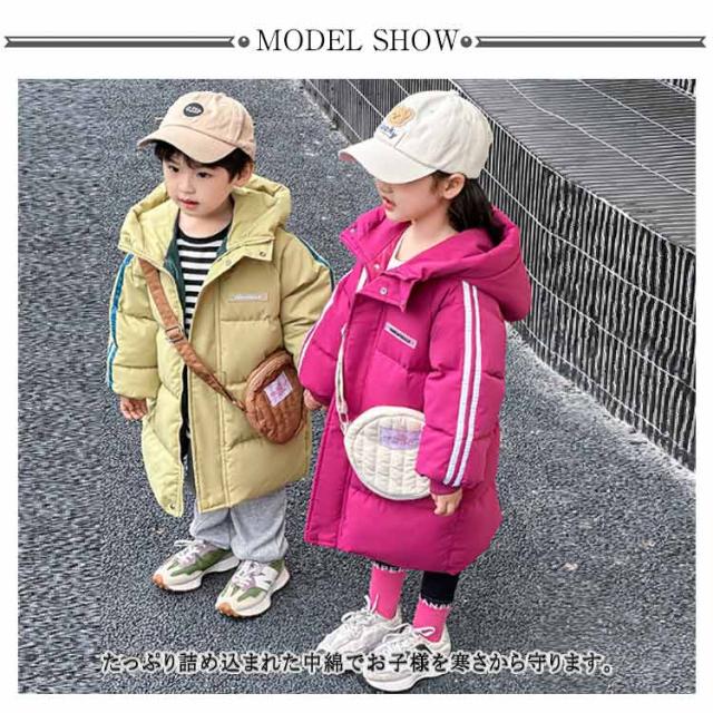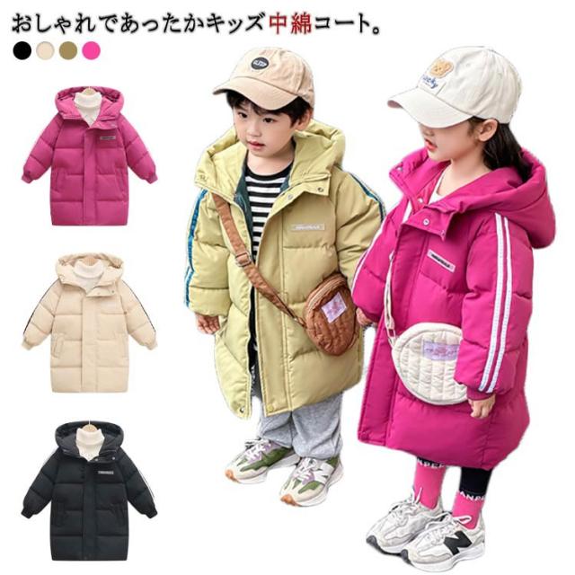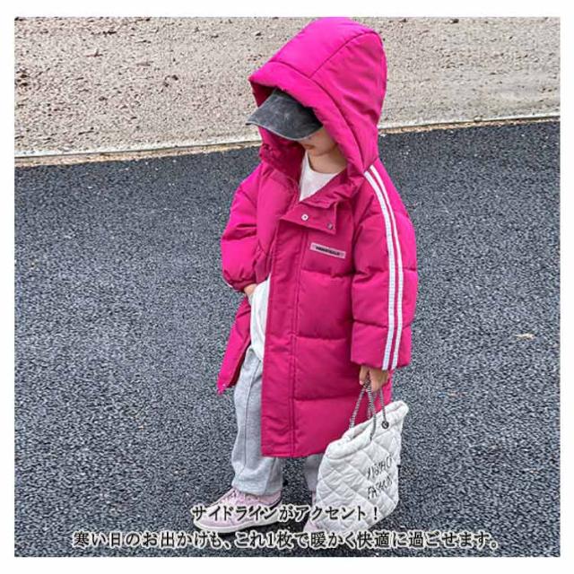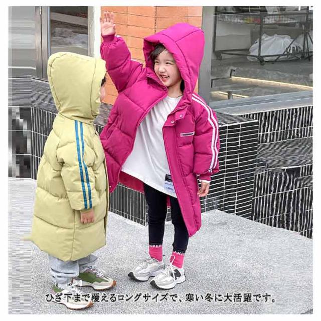 ロングコート 冬アウター 可愛い 中綿ジャケット 厚手 ジャケット 子供 子供服 キッズ 女の子 キッズ アウター ジャンパー 冬服 軽い ロング丈 防寒 暖かい 軽量 中綿 防寒コート 2本ライン おしゃれ ジュニア 100 秋冬 90 フード付き 110 110 120 130 140