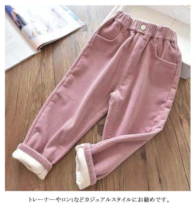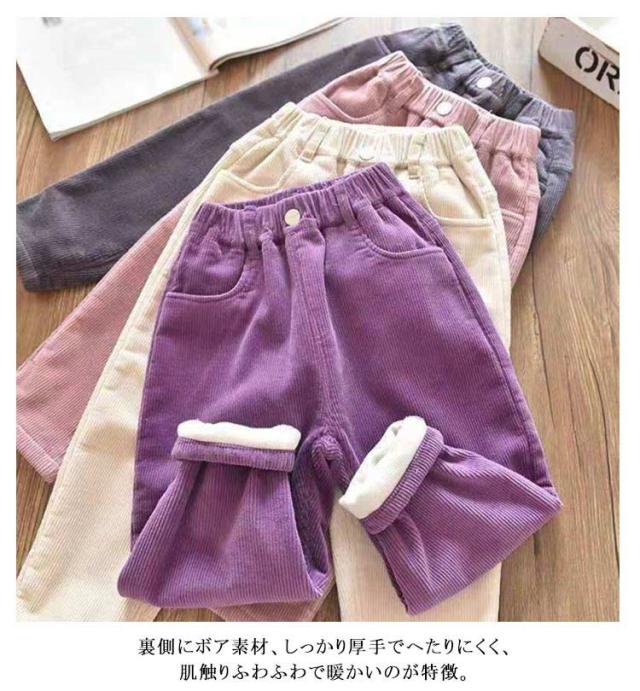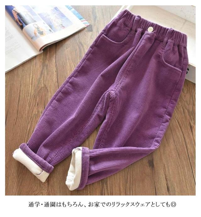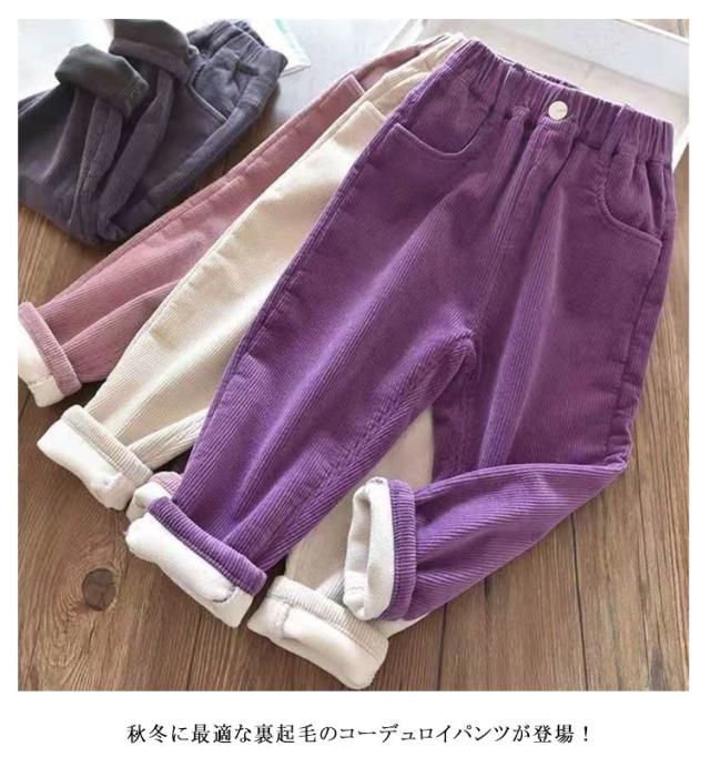| 【コーデュロイ裏起毛パンツ】【90〜150cm】【4color】 秋冬に最適な裏起毛のコーデュロイパンツが登場! 裏側にボア素材、しっかり厚手でへたりにくく、肌触りふわふわで暖かいのが特徴。 ソフトで柔らかい肌触り、どんな動きもサポートしてくれる。 トレーナーやロンtなどカジュアルスタイルにお勧めです。 通学・通園はもちろん、お家でのリラックスウェアとしても◎ | |