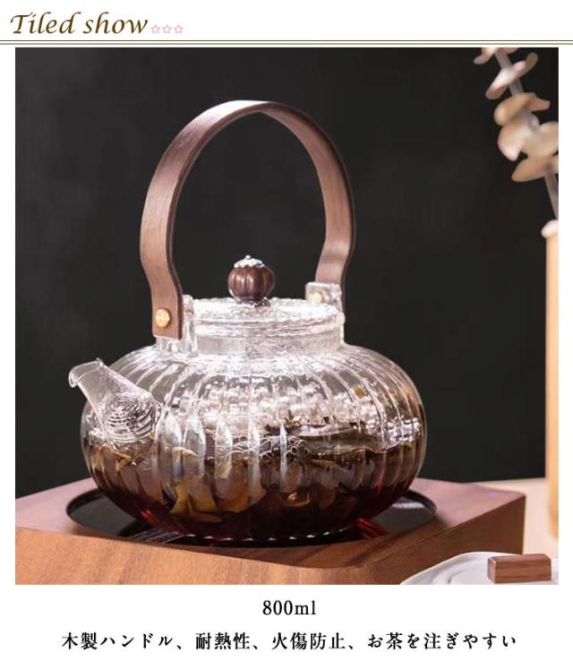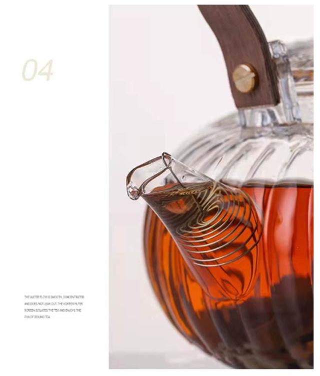 | 800ml 木製ハンドル、耐熱性、火傷防止、お茶を注ぎやすい 注ぎ口は鷲のくちばしで設計されており、注ぐときにお茶を排出し、漏れを防ぎます。 高ホウケイ酸ガラスは耐熱性と透明性に優れています。 | |