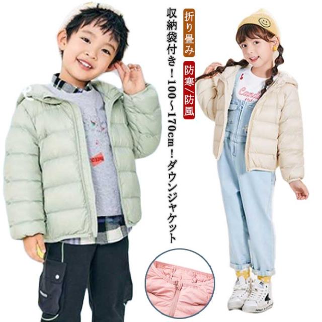 男の子 アウター ダウンコート ダウンジャケット 子供 フード付き 140 冬 女の子 防寒 無地 収納袋付き 軽量 可愛い 暖かい 韓国子供服 110 110 120 130 キッズ 150 160