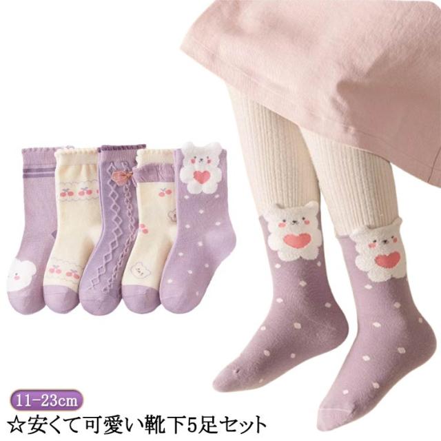 子供 靴下 5足セット ソックス キッズ 女の子 ベビー 小学生 11 12 13 14 15 16 17 18 19 20 21 22 23cm 子供服 ギフト 内祝い 入園 入学 入園準備 入園グッズ 子ども こども 靴下 ジュニアくつした 通園 通学 靴下 運動会 目立つ 兎 送料無料