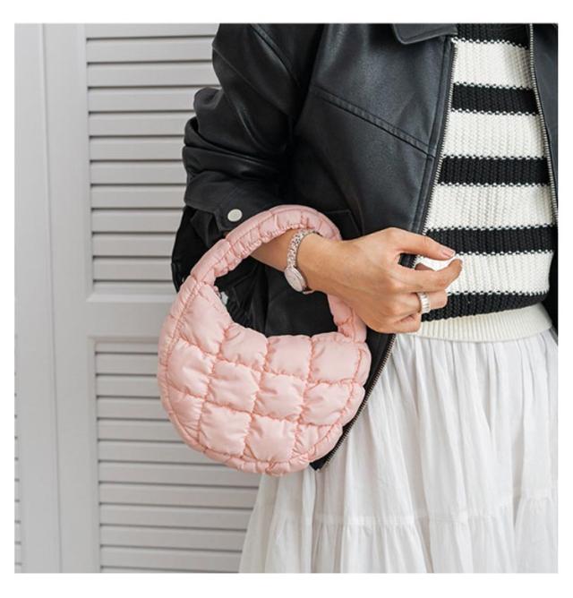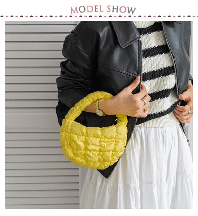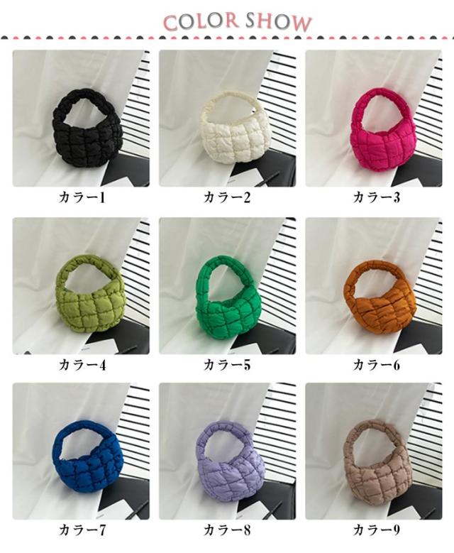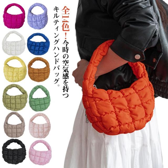 | 全14色!今時の空気感を持つキルティングハンドバッグ。 ミニサイズでスマホ、鍵、財布、口紅など、外出時に重要な小物を持ち運ぶのに便利です。 ファッション性と実用性を兼ね備えたキルティングバッグです。 | |