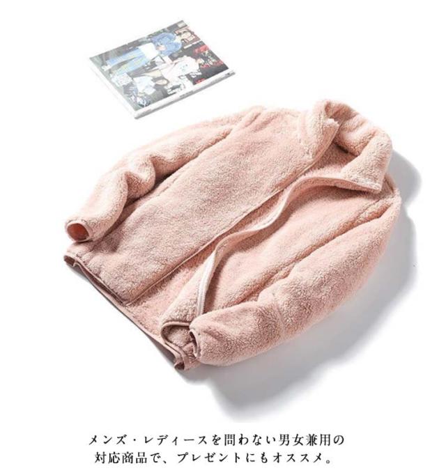 | 暖ったかボアフリースジャケット。M-8XL! ふんわりもこもことした生地でやわらかい雰囲気が季節感を漂わせてくれる1枚です。 裏と表は空気を含んであったかフリース素材を使用し、冬の防寒対策もばっちりです。 首元まで暖かいスタンドカラーも嬉しいポイント。 柔らかな肌触りで毛布そのままを着ているような両面ボアフリース素材を使用しております。 お出かけにも部屋着にもマストな一着。 メンズ・レディースを問わない男女兼用の対応商品で、プレゼントにもオススメ。 ペアやカップルコーデのお揃いにも最適で、家族でシェアしたりと幅広く活躍します。 | |
