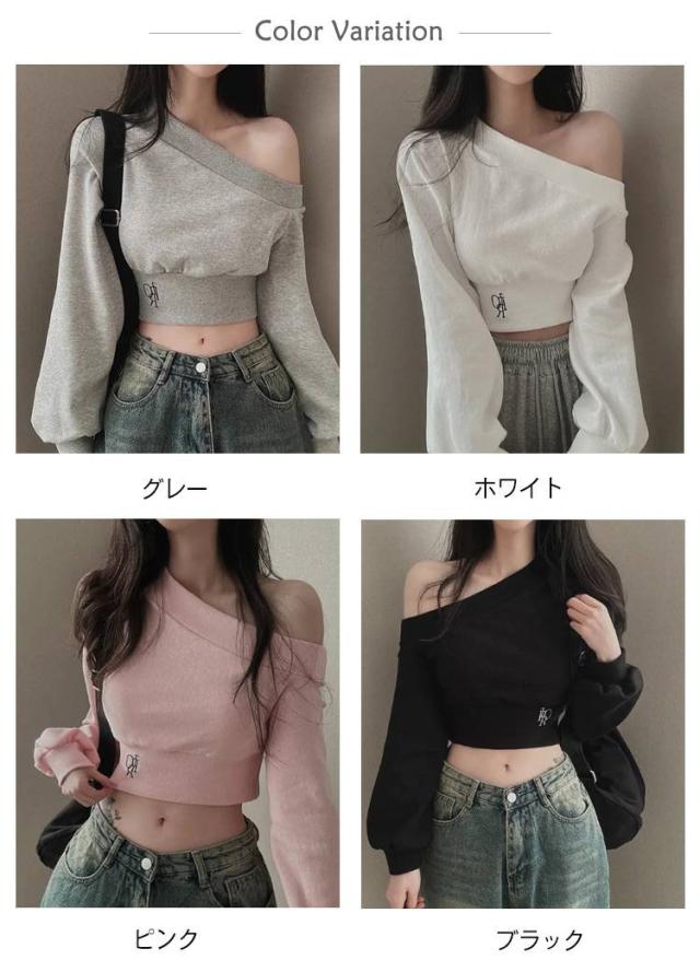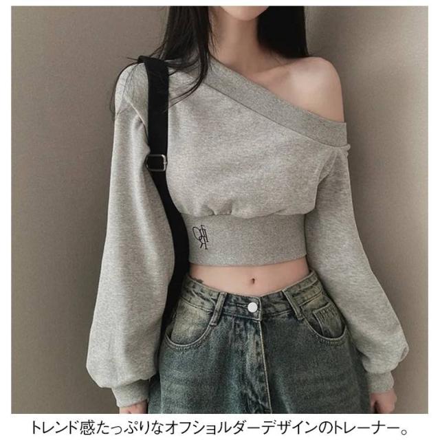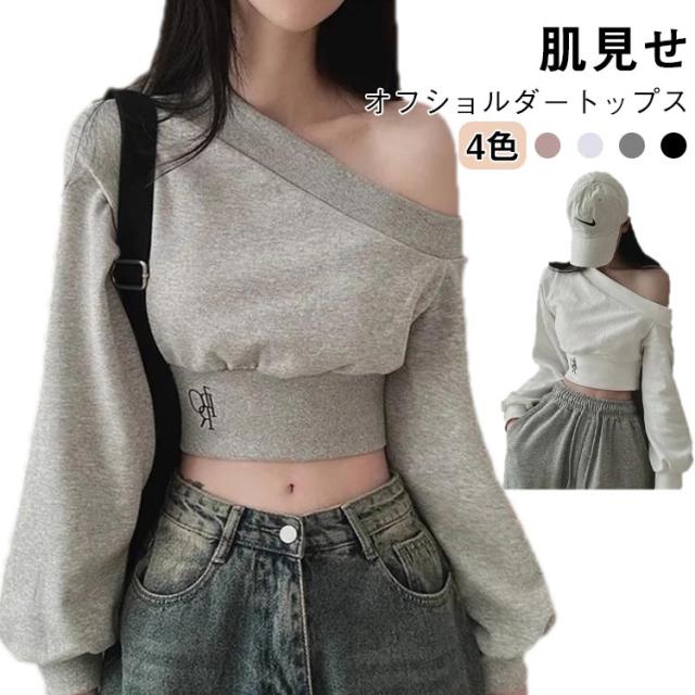 トレーナー 肩出し 肩出し スウェット 長袖 20代 きれいめ レディース ショート丈 オフショルダー 30代 コンパクト 春服 秋服 おしゃれ