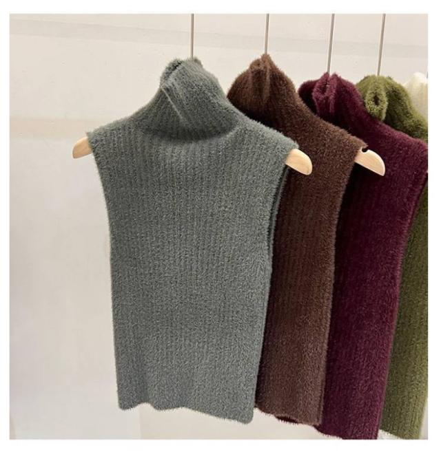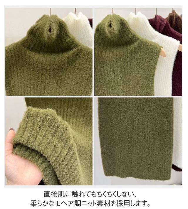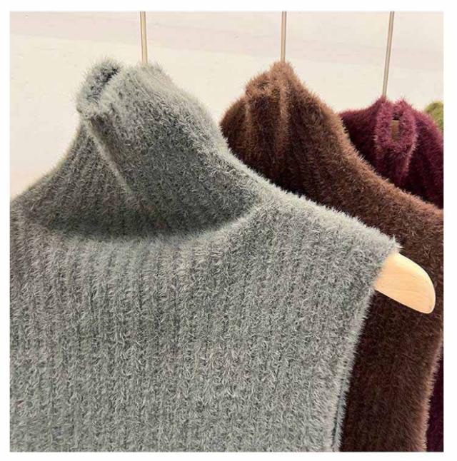 ニットタンクトップ トップス ノースリーブ シャギーニット かわいい ニット モヘア調 タートルネック もこもこ ノースリーブ 秋冬 春