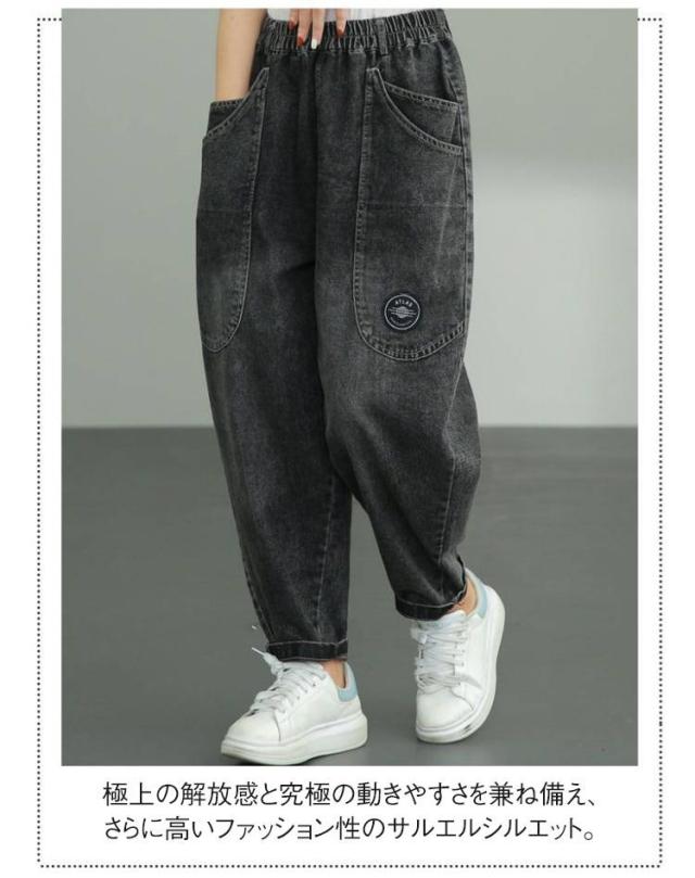 デニム ワイド サルエルパンツ レディース パンツ デニム バルーン コクーンパンツ デニム デニムパンツ サルエル ゆるパンツ アラジンパンツ 綿 お洒落 体型カバー 春 秋 冬