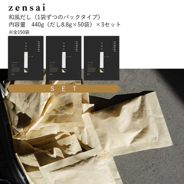 【3セット】zensai【お出汁】(だしパック)8.8g×50袋 高級枕崎産 鰹 本枯節 さば枯節 春採れ椎茸 利尻産昆布 天日塩 天然素材 国産 日本製 高級出汁 プレゼントにも SOIS ソイズ そいず