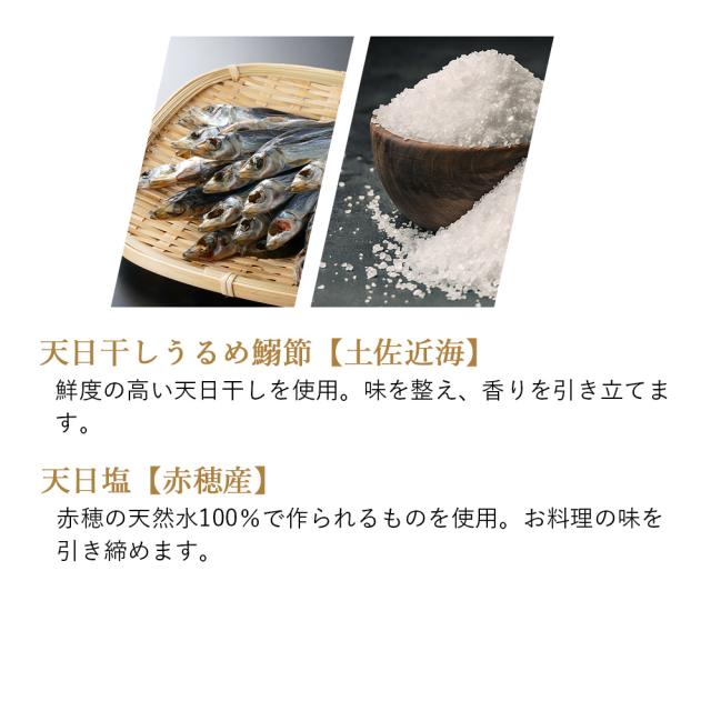 | 原材料名 | 食塩(国内製造)、風味原料(かつおぶし<粗砕)、 さば削りぶし、うるめ削りぶし、乾しいたけ、乾燥こんぶ)、砂糖、粉末しょうゆ、オニオン粉末/調味料(アミノ酸等)、カラメル色素、乳酸カルシウム、(一部に小麦・さば・大豆を含む) |