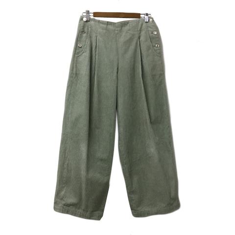 【中古】シップス パンツ ワイド ロング コーデュロイ マリンパンツ タック 38 黄緑 緑 イエローグリーン グリーン