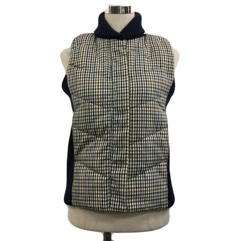 【中古】アーノルドパーマー ベスト 中綿 比翼仕立て リブ ニット 切替 刺繍 ロゴ ワンポイント チェック 2 紺 白