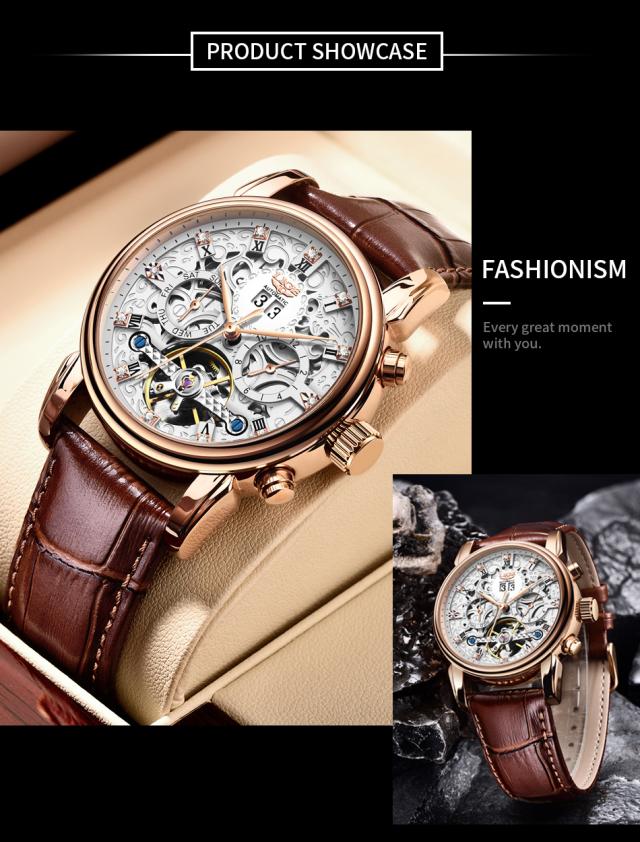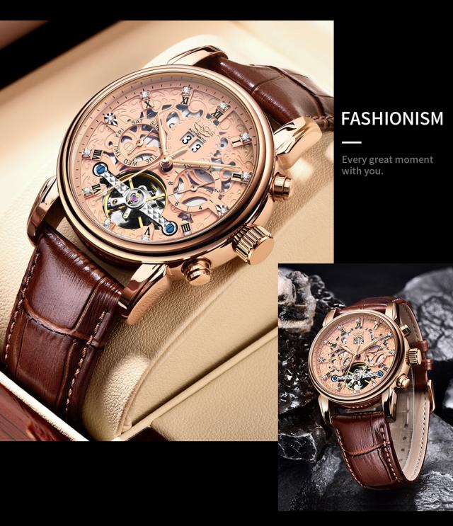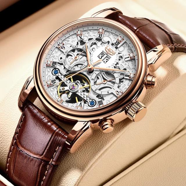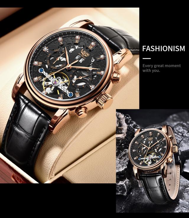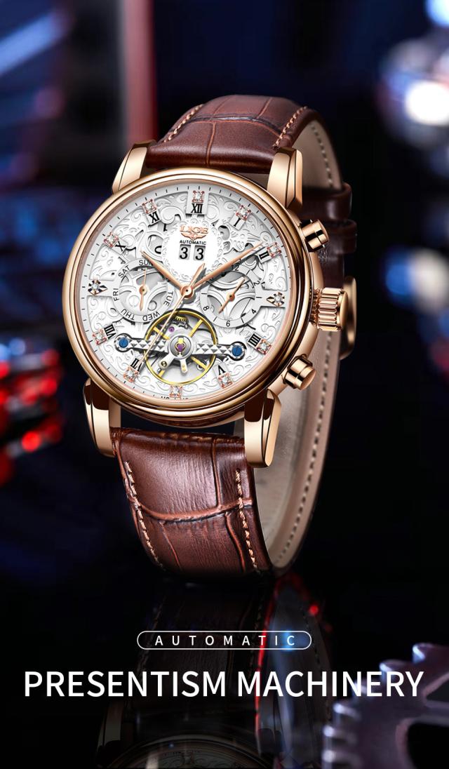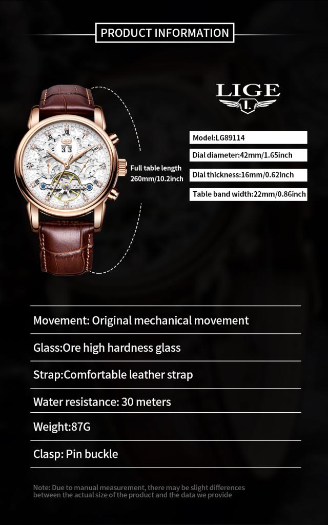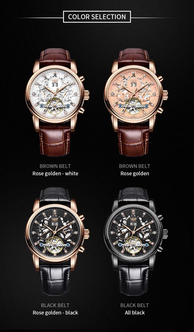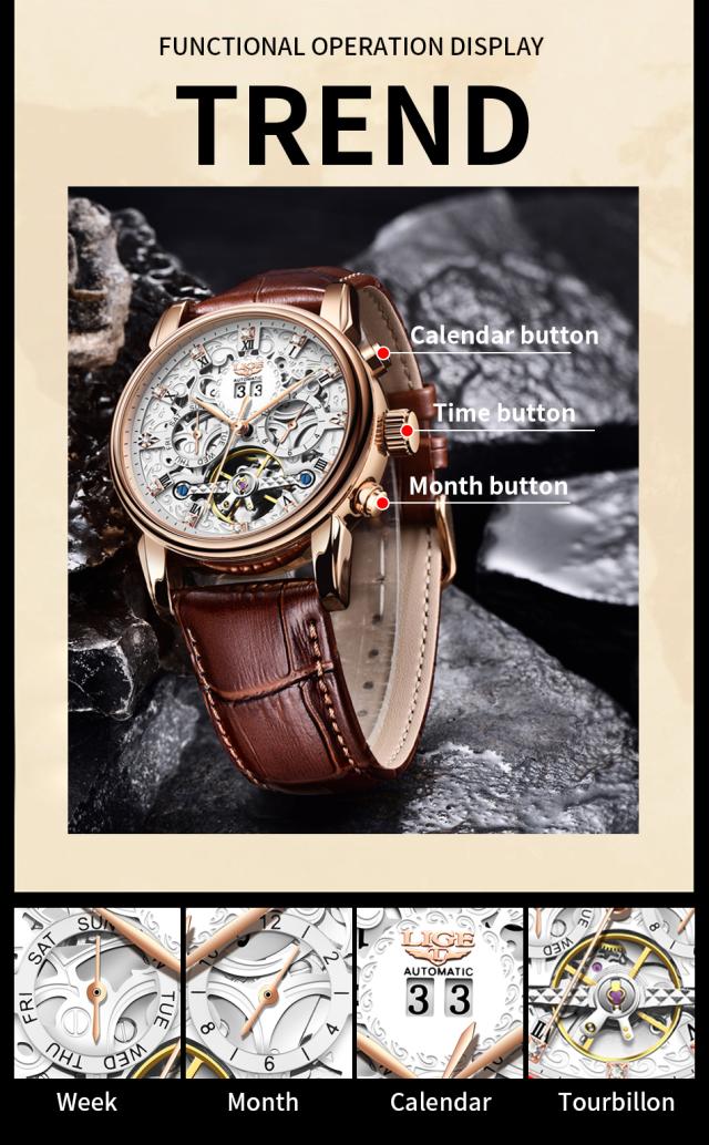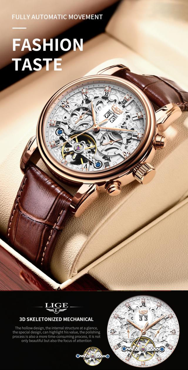 Ligeトップブランド高級トゥールビヨン時計男性ファッションビジネス時計男性用カジュアルスポーツ防水男性用機械式自動時計