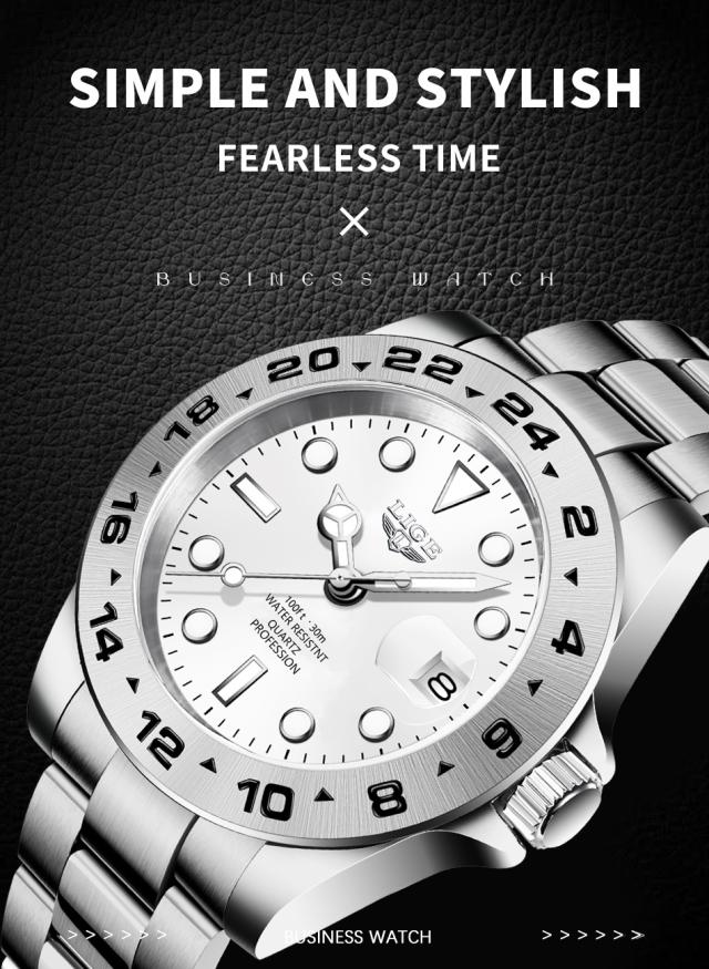 Lige-メンズ防水フルスチールクォーツ時計、スポーツウォッチ、ミリタリークロック、トップブランド、ラグジュアリー、ホットセール