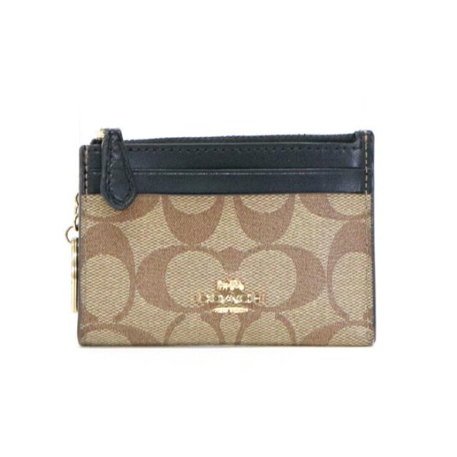 カードケース PVC レザー シグネチャー F88208 コインケース マルチケース ミニ財布 パスケース レディース ベージュ / ブラック