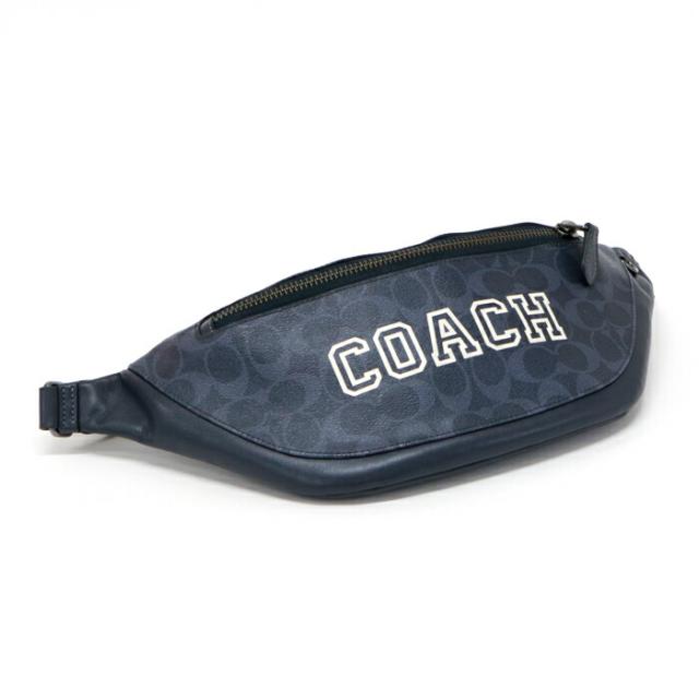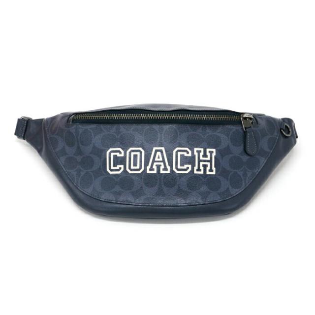 【ABランク】 コーチ COACH ワーレン ベルト バッグ シグネチャー キャンバス ウィズ ヴァーシティ モチーフ PVC / リファインド カーフ レザー ロゴ CB912 ボディバッグ クロスボディ メンズ ミッドナイト (ネイビー) 中古 mba15019