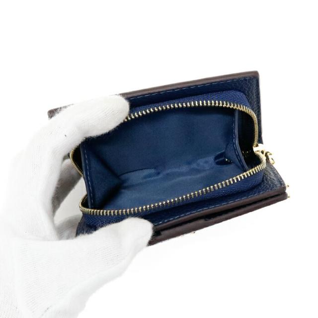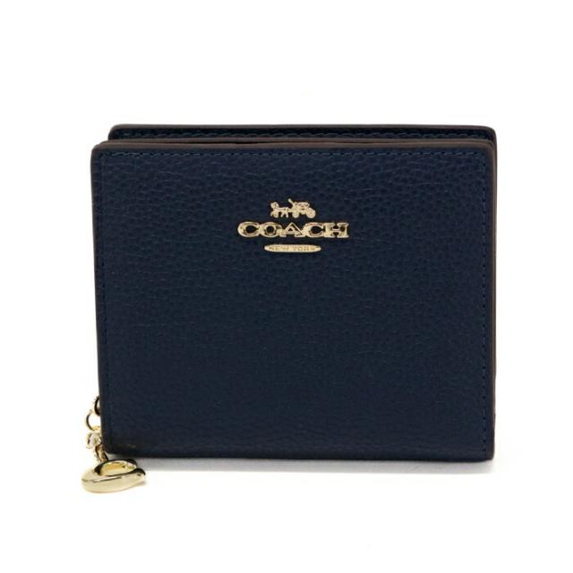 【Sランク】 コーチ COACH スナップ ウォレット リファインド ペブル レザー C2862 二つ折り財布 ラウンドファスナー ミディアムウォレット コインケース Cチャーム レディース メンズ ネイビー 新品同様 中古 mbf28024