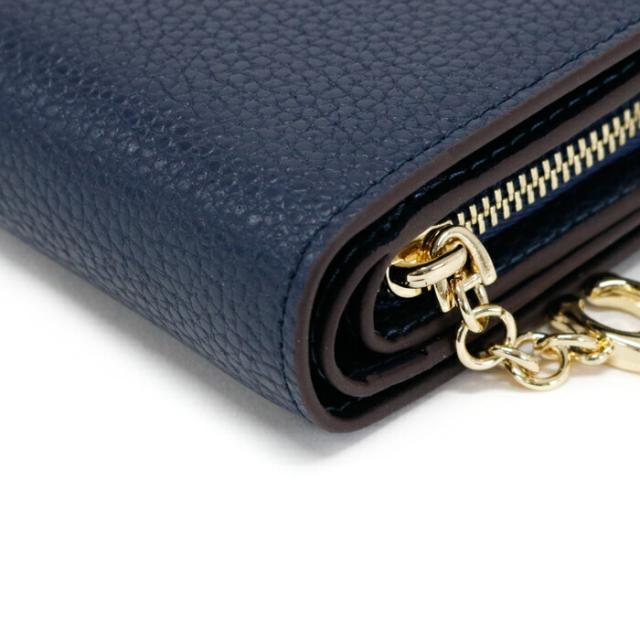 ブランド 現行品 二つ折り 財布 紺 ゴールド 本革 人気 ユニセックス ギフト