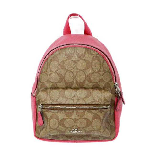 コーチ COACH ミニ リュック PVC / レザー シグネチャー F58315 バックパック バッグ かばん レディース ピンク / カーキ (ベージュ) 中古 mbe17002