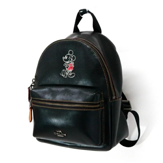 コーチ COACH ミニチャーリー バックパック グラブタンレザー ディズニーコラボ F59837 リュック バッグ Disney Mickey ディズニー ミッキー レディース メンズ ブラック 中古 mbe17003