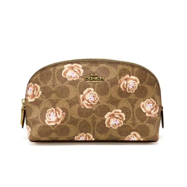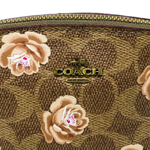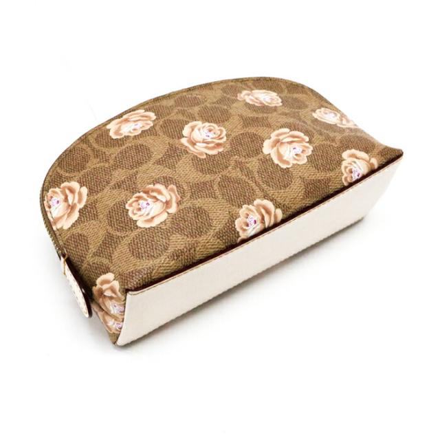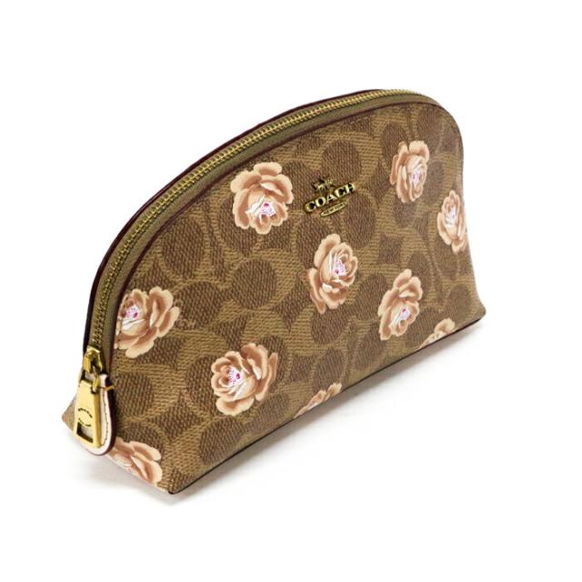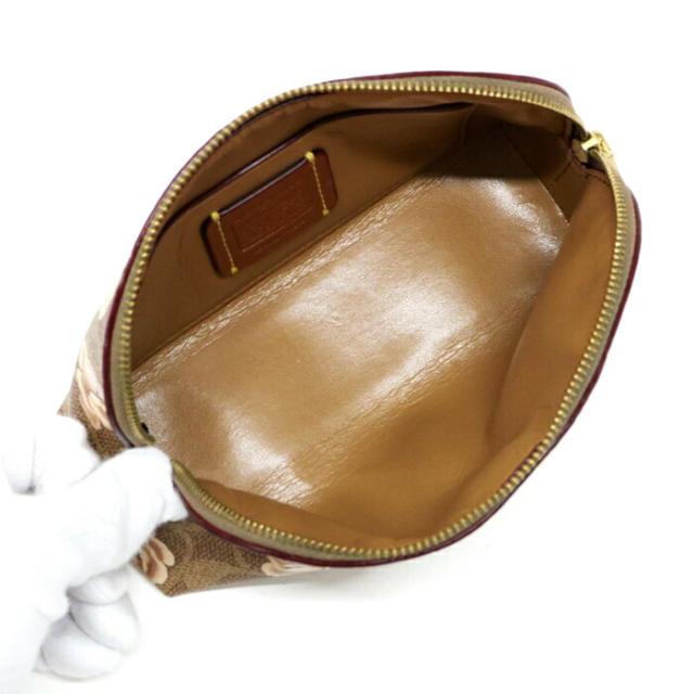 コーチ COACH コスメポーチ レザー PVC シグネチャー フラワープリント 花柄 39244 マルチポーチ レディース ブラウン / ベージュ / ピンク 中古 map03012