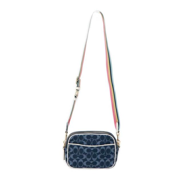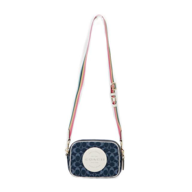 ショルダーバッグ デニム / レザー シグネチャー C2822 カメラバッグ クロスボディ 斜め掛け 肩掛け ポシェット レディース ネイビー / ホワイト