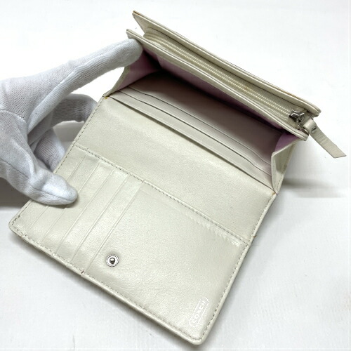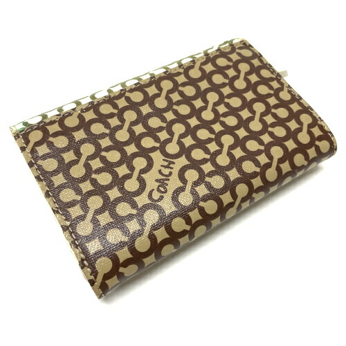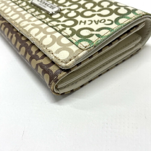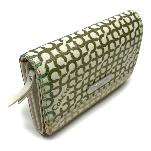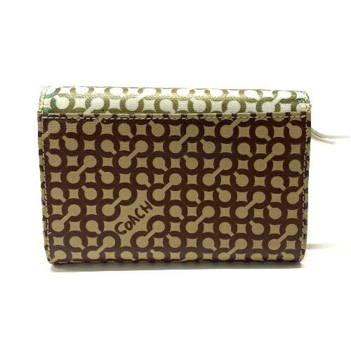 コーチ COACH 二つ折り財布 レザー PVC ウォレット 柄 カラフル レディース アイボリー / グリーン / ベージュ 中古 maf24015