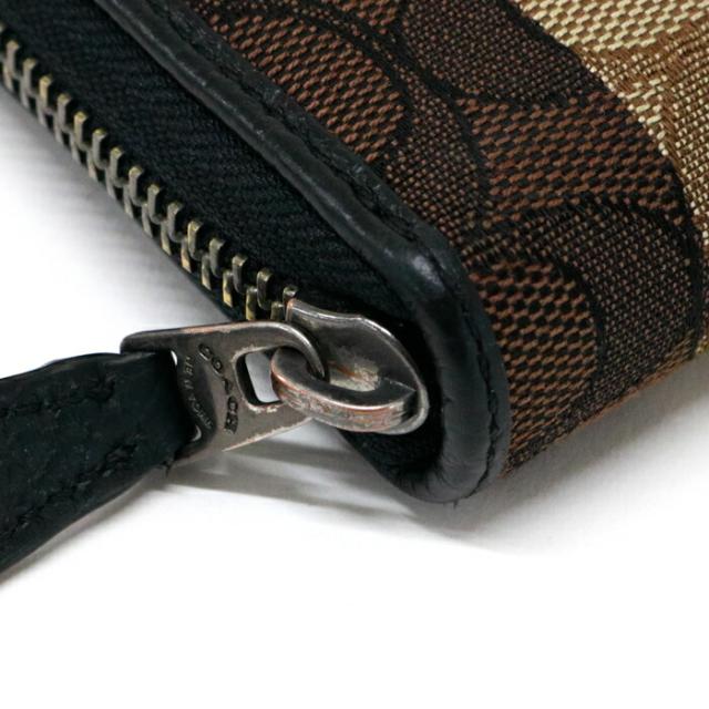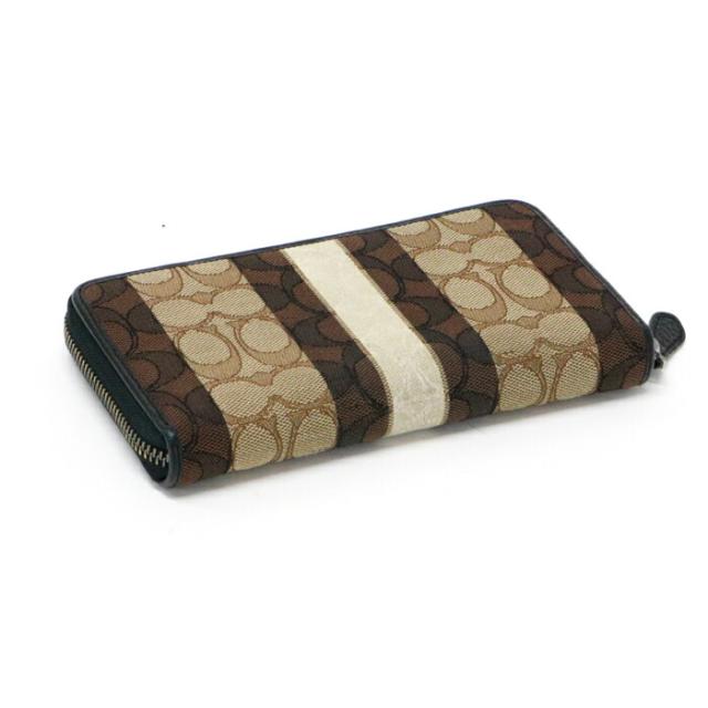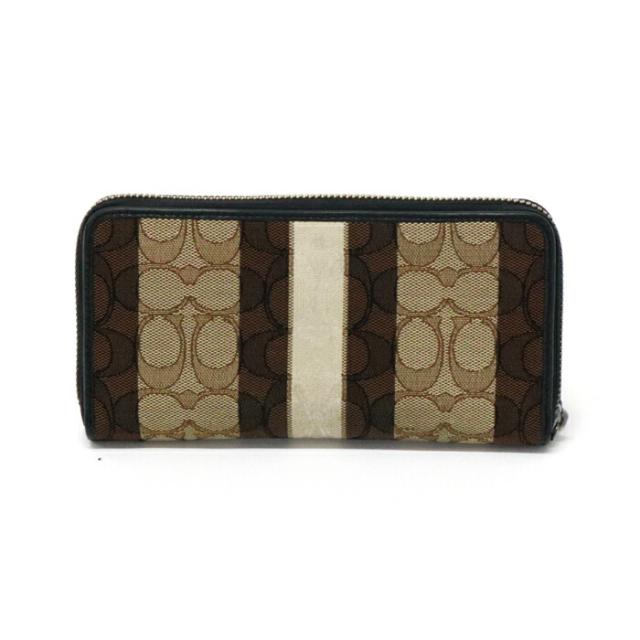 コーチ COACH アコーディオン ウォレット キャンバス / レザー シグネチャー / ストライプ C5448 長財布 ラウンドファスナー ロングウォレット レディース メンズ ベージュ / ブラウン / ブラック 中古 may21001