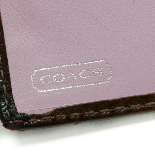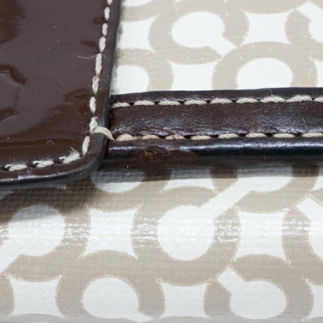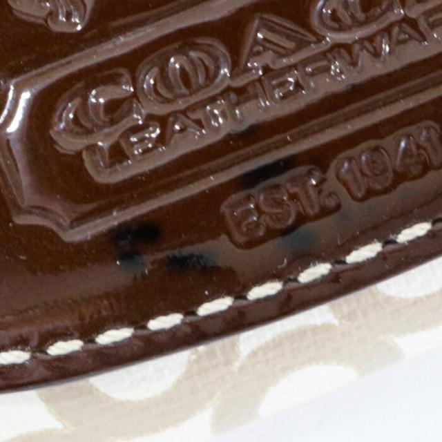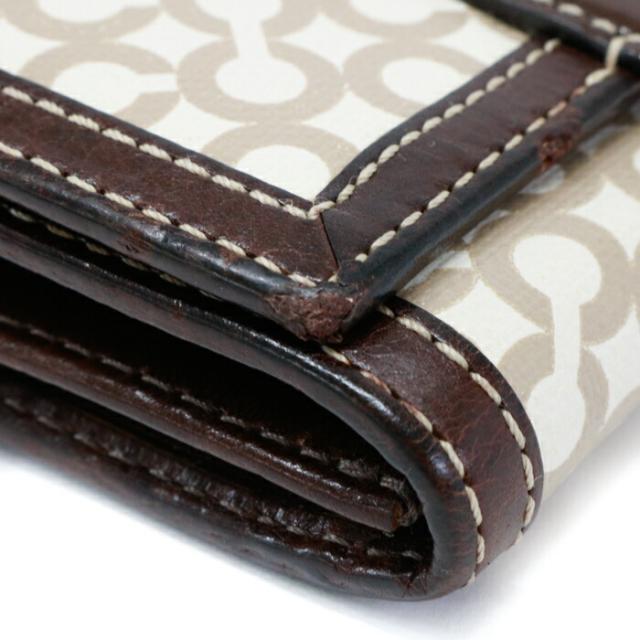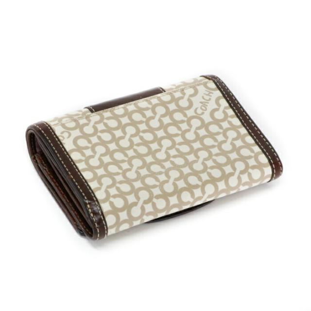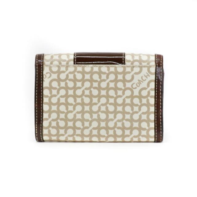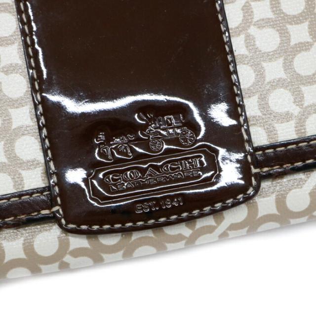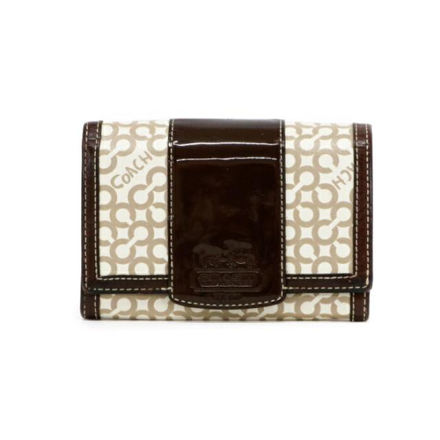 コーチ COACH 二つ折り財布 レザー PVC パテント オプアート コンパクトウォレット レディース メンズ ブラウン / ベージュ 中古 mam01089