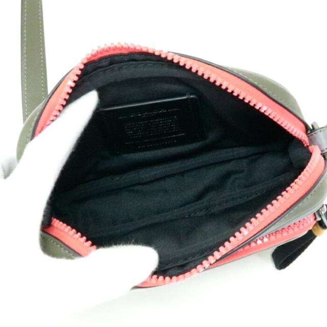 コーチ COACH ミニ エッジ ダブル ポーチ クロスボディ ウィズ コーチ パッチ スムース カーフレザー 5798 ショルダーバッグ クロスボディ 斜め掛け 肩掛け カメラバッグ ポシェット メンズ レディース ユニセックス オリーブ (カーキ) / オレンジ 美品 中古 mat25004