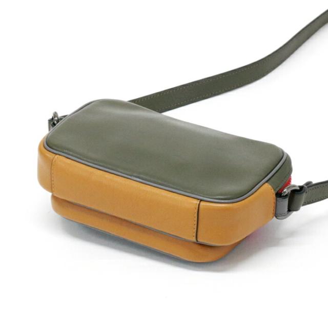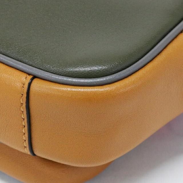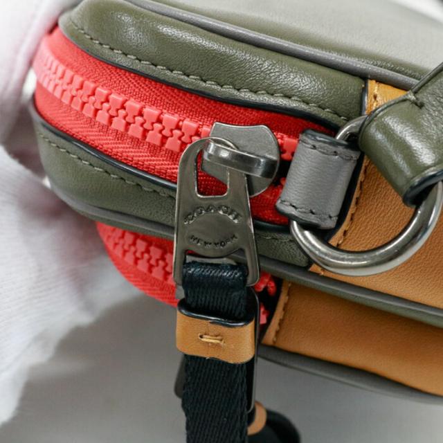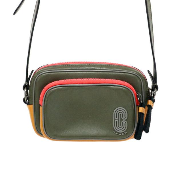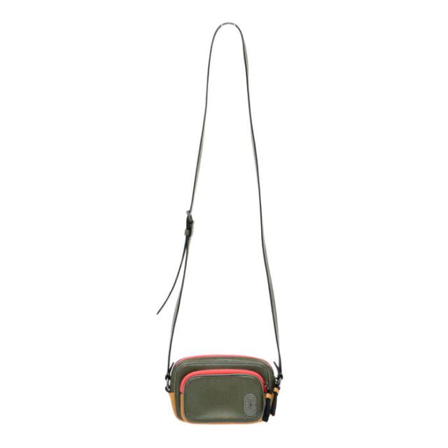 コーチ COACH ミニ エッジ ダブル ポーチ クロスボディ ウィズ コーチ パッチ スムース カーフレザー 5798 ショルダーバッグ クロスボディ 斜め掛け 肩掛け カメラバッグ ポシェット メンズ レディース ユニセックス オリーブ (カーキ) / オレンジ 中古 max14006