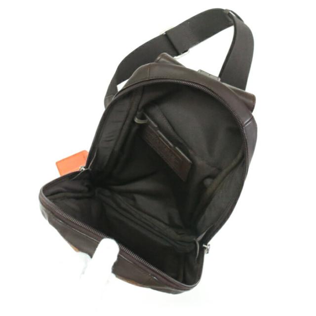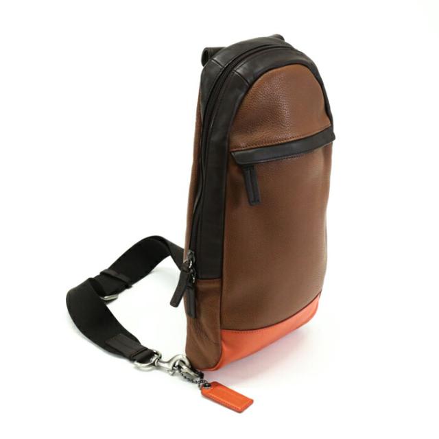キャムデン コンバーチブル スリングバッグ レザー F70922 ボディバッグ ショルダーバッグ クロスボディ 斜め掛け 肩掛け メンズ ダークブラウン / ブラウン / オレンジ