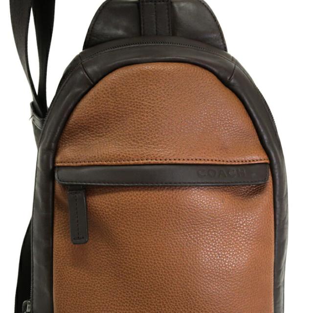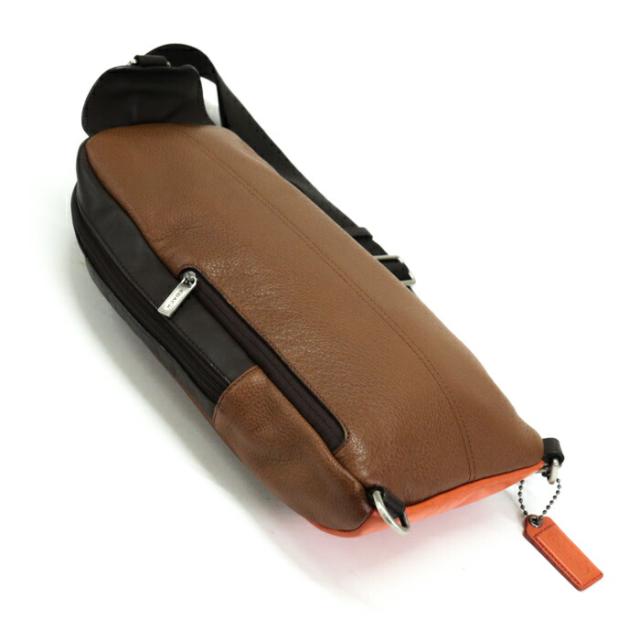 コーチ COACH キャムデン コンバーチブル スリングバッグ レザー F70922 ボディバッグ ショルダーバッグ クロスボディ 斜め掛け 肩掛け メンズ ダークブラウン / ブラウン / オレンジ 中古 map07012