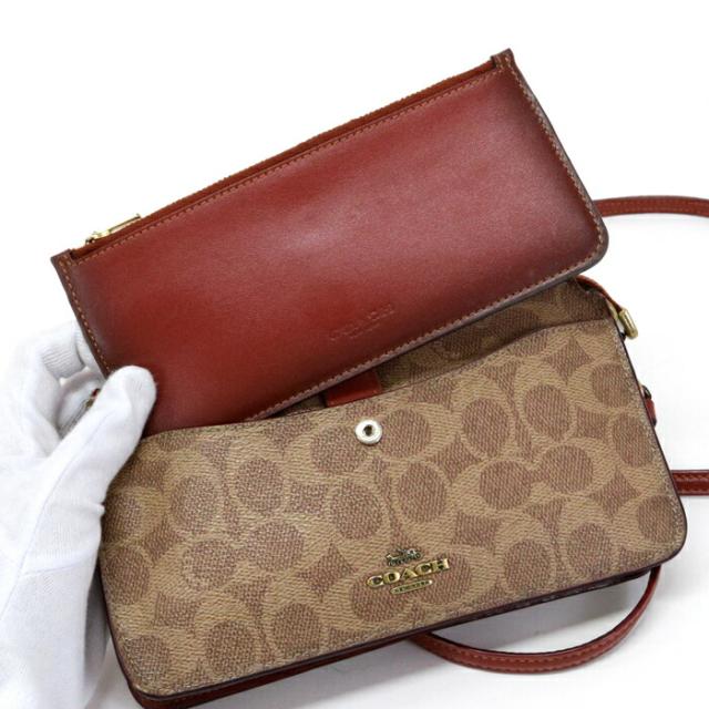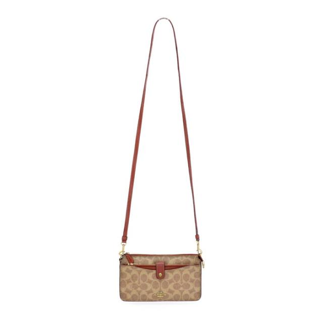 コーチ COACH ノア ポップアップ メッセンジャー PVC / リファインド カーフ レザー 37458 ショルダーバッグ クロスボディ ショルダーウォレット スマホショルダー ポシェット レディース メンズ タンラスト (ベージュ) / ブラス (ブラウン) 中古 mba14009