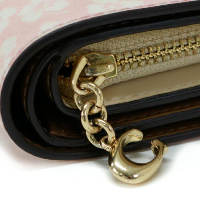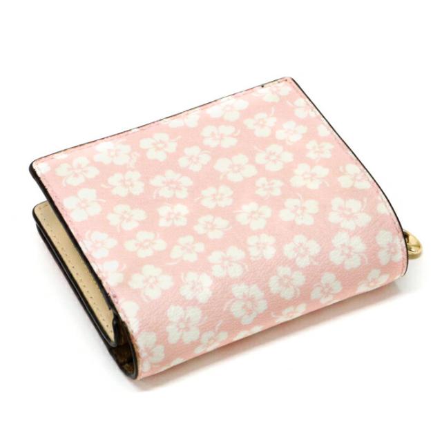 スナップ ウォレット ウィズ グラフィック ディッチー PVC / スムース レザー フローラルプリント / 花柄 CA782 二つ折り財布 ラウンドファスナー ミディアムウォレット コインケース Cチャーム レディース ピンク / ホワイト