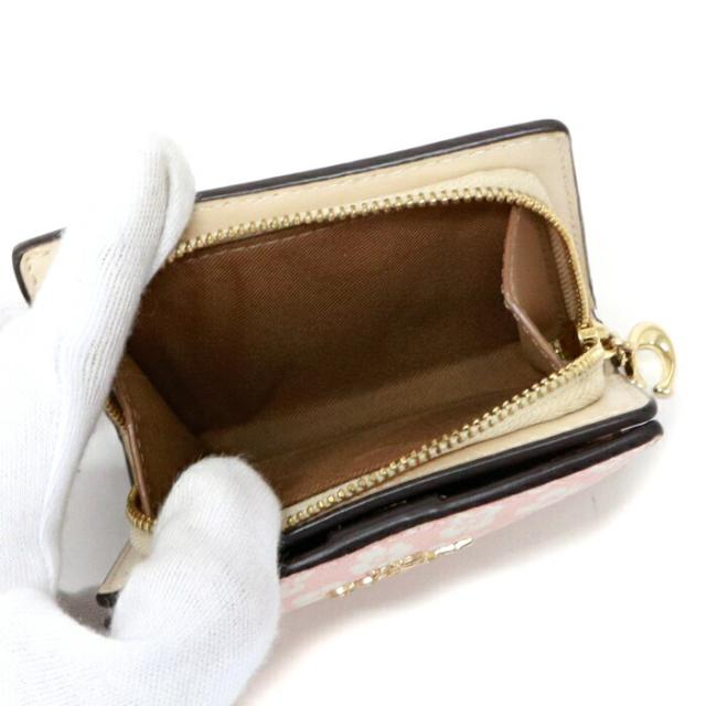 コーチ COACH スナップ ウォレット ウィズ グラフィック ディッチー PVC / スムース レザー フローラルプリント / 花柄 CA782 二つ折り財布 ラウンドファスナー ミディアムウォレット コインケース Cチャーム レディース ピンク / ホワイト 中古 mba22023