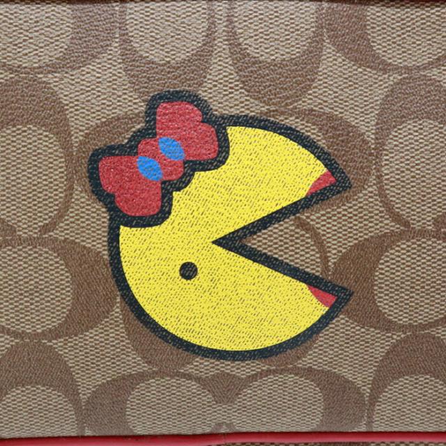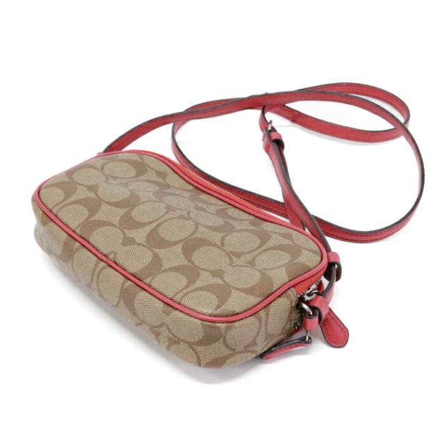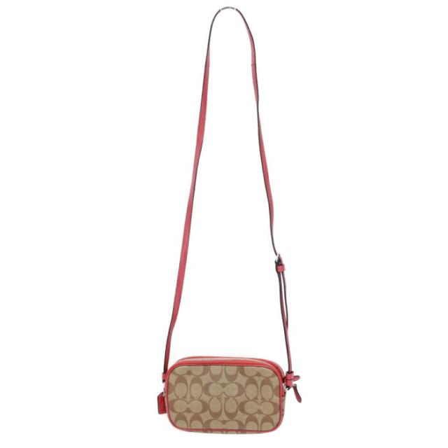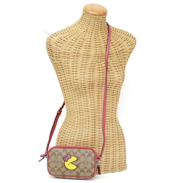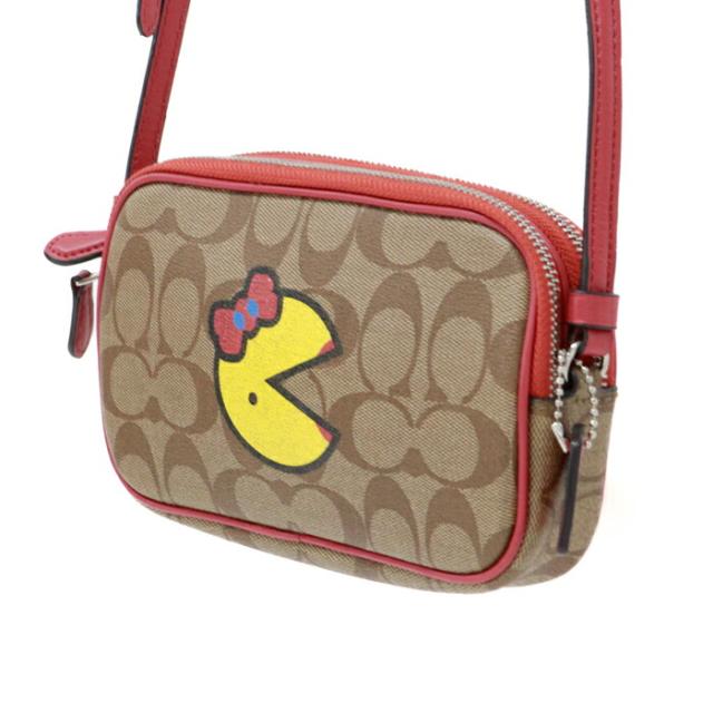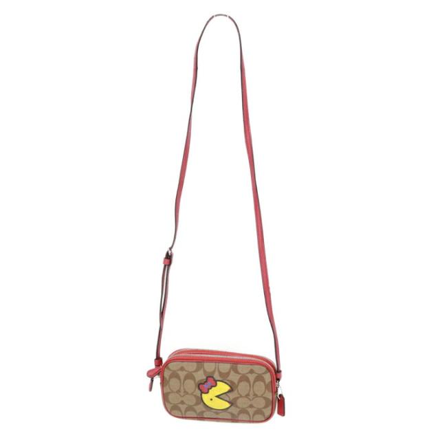 コーチ COACH ショルダーバッグ PVC レザー シグネチャー F73446 パックマン コラボ カメラバッグ クロスボディ 斜め掛け 肩掛け ポシェット ポーチ ショルダーウォレット レディース メンズ ベージュ / レッド 美品 中古 mba28013