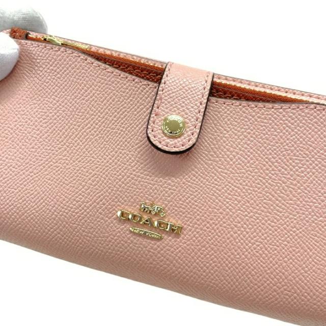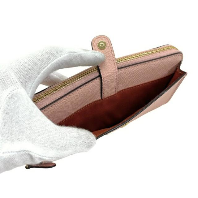 コーチ COACH カラーブロック マルチファンクション ウォレット グレインレザー F25967 長財布 ラウンドファスナー ロングウォレット レディース ピンク / ブラス (ブラウン) 中古 mbb05012