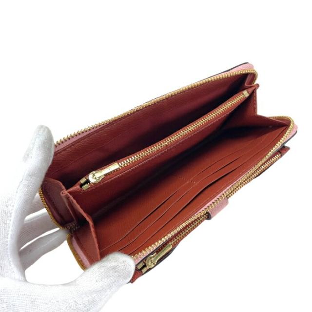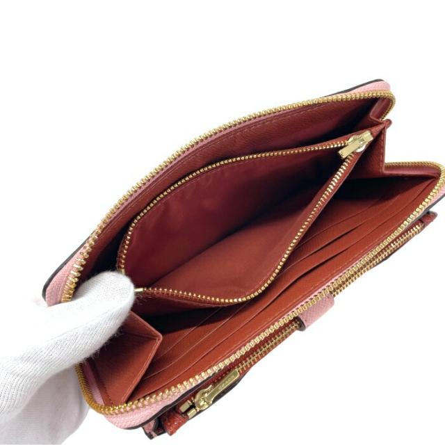 カラーブロック マルチファンクション ウォレット グレインレザー F25967 長財布 ラウンドファスナー ロングウォレット レディース ピンク / ブラス (ブラウン)