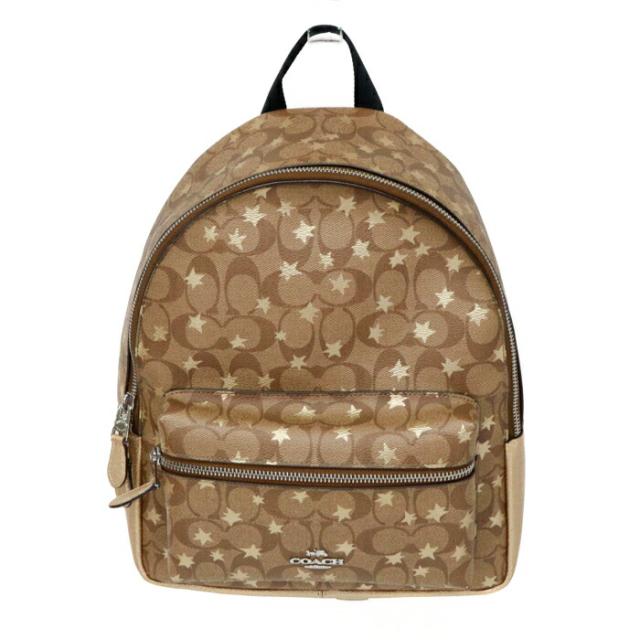 コーチ COACH チャーリー ミニ バックパック ウィズ スター PVC / レザー シグネチャー / スター F41298 ミニ リュック かばん レディース メンズ ベージュ / ゴールド 中古 mbb06015