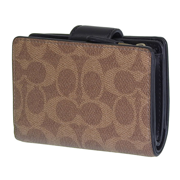 コーチ 財布 レディース 二つ折り財布 アウトレット タン×ブラック ミディアムコーナージップウォレット シグネチャー キャンバス MDM CRNR ZP SIG CW786IMQRX COACH