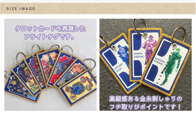 | 商品について | アニメ「ジョジョの奇妙な冒険 スターダストクルセイダース」のフライトタグです。 高級感ある金糸刺繍のフチ取りがポイント!タロットカードを再現したフライトタグです。 |