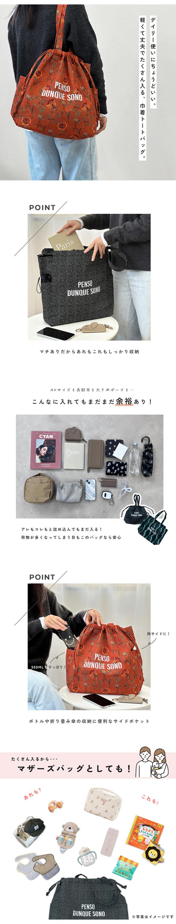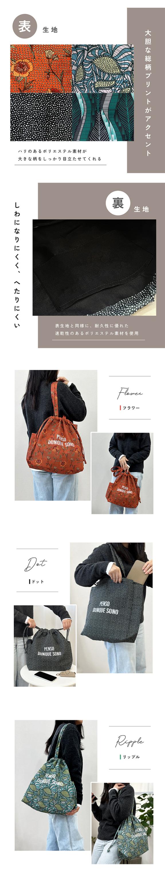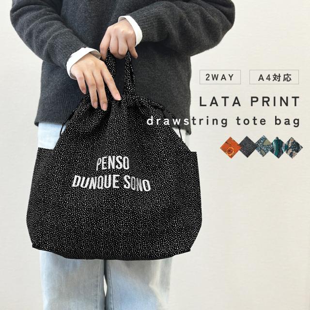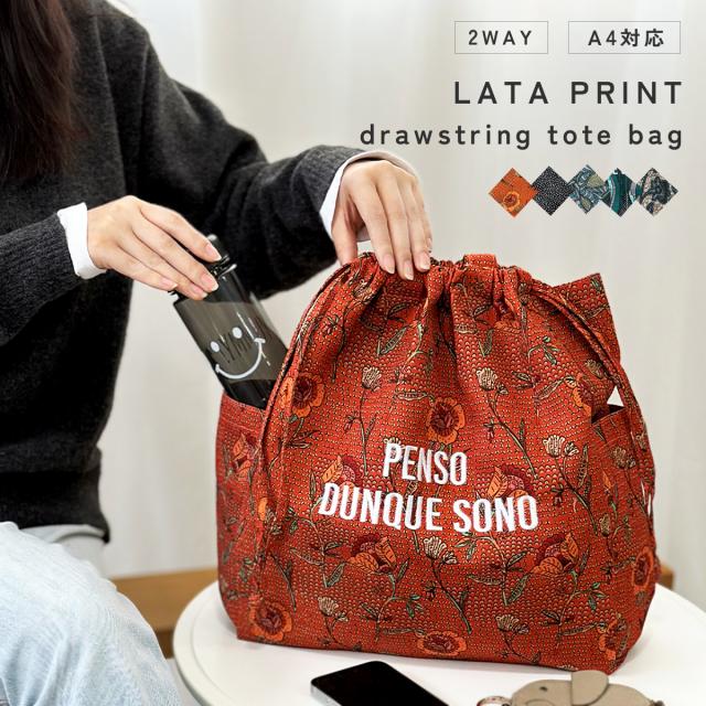 トートバッグ 巾着 2way 肩掛け 総柄 エコバッグ お買い物バッグ 通勤 通学 マザーズバッグ A4 大きめ 大容量 レディース ラタプリント 鞄 かばん カバン ナイロン 丈夫 かわいい おしゃれ 派手 刺繍 ロゴ 送料無料 プレゼント ギフト