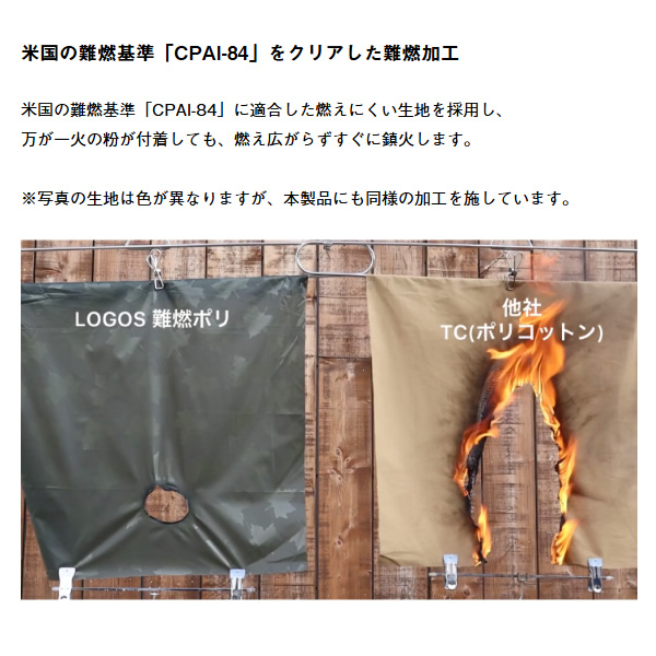 ※難燃加工を施したシートであっても、テント・タープ内及び側では火気厳禁となります。
