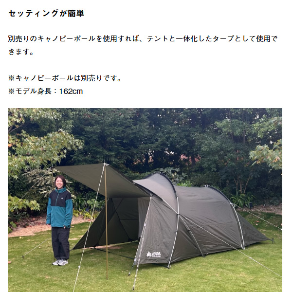 ※付属品のペグとハンマーは、晴天無風の整地された環境下でのご使用を想定した製品仕様となります。