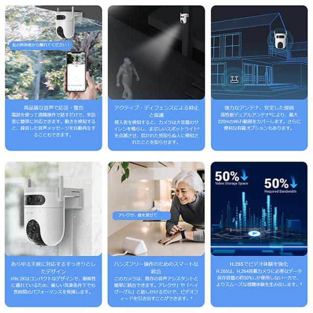 CS-H9C | 300万画素 デュアルレンズ パンチルト対応Wi-Fiネットワークカメラ【屋外対応】【EZVIZ】【イージービズ】