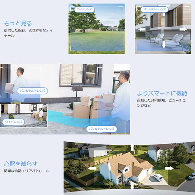 2つのカメラがそれぞれ動作することで、幅広いエリアを監視することが可能です。