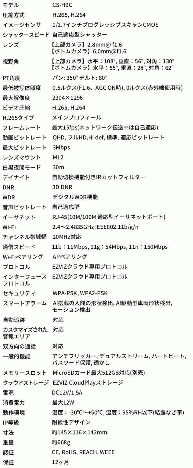 ■ CS-H9C 300万画素 デュアルレンズ パンチルト対応Wi-Fiネットワークカメラ