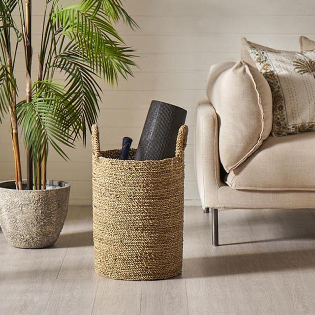 お家にいながらアジアンリゾート気分を楽しめる天然素材シーグラスのバスケット。高さはもちろん間口も広く使いやすい大容量サイズです。しっかりとした作りで、重いものを入れても形が崩れにくく、持ち運びもラクラク。