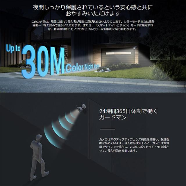 過酷な天候下でも、長期間のパフォーマンスを保証し、ご自宅の駐車場監視、自宅敷地内へ立ち入る人の録画等にもご活用いただけます。
