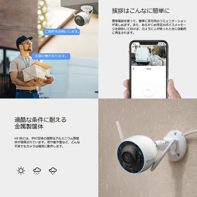 CS-H3(5MP) | 500万画素 Wi-Fiネットワークカメラ【屋外対応】【EZVIZ】【イージービズ】